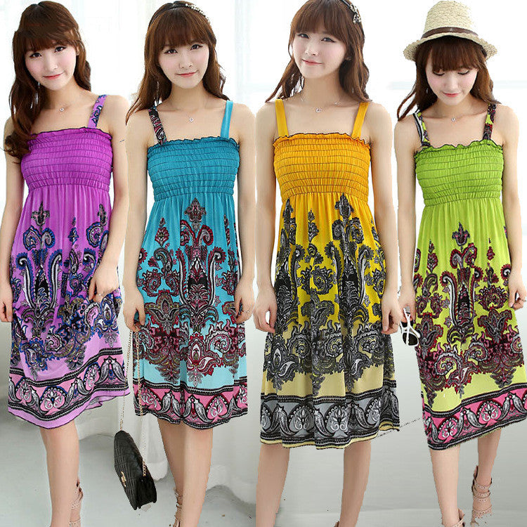 Bohemian Floral Dress Printed Milk Silk Plus Size Beach Dress Suspender Dress For Women