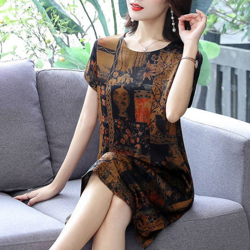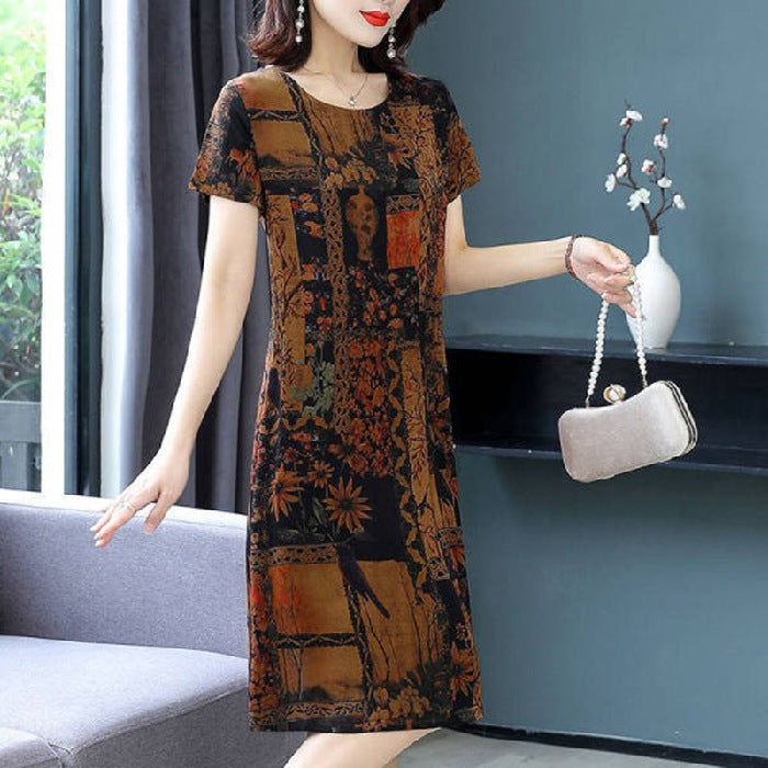 Printed Dress Slim Fit Slimming Youthful-looking Mid-length Short Sleeve Women's Dress