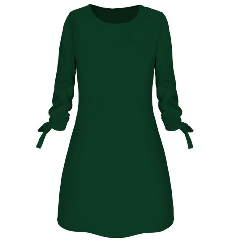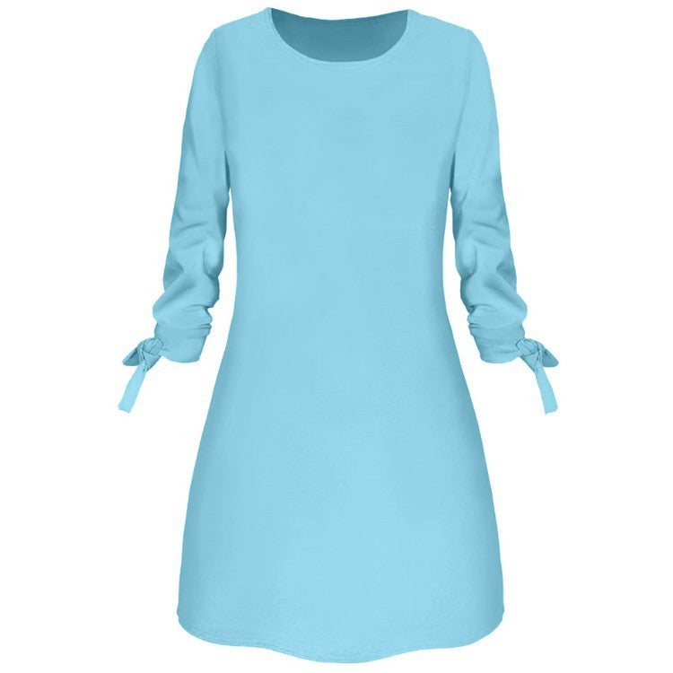 Spring, Summer, Autumn, European And American Solid Color Dress, Casual O-neck Dress, Lace