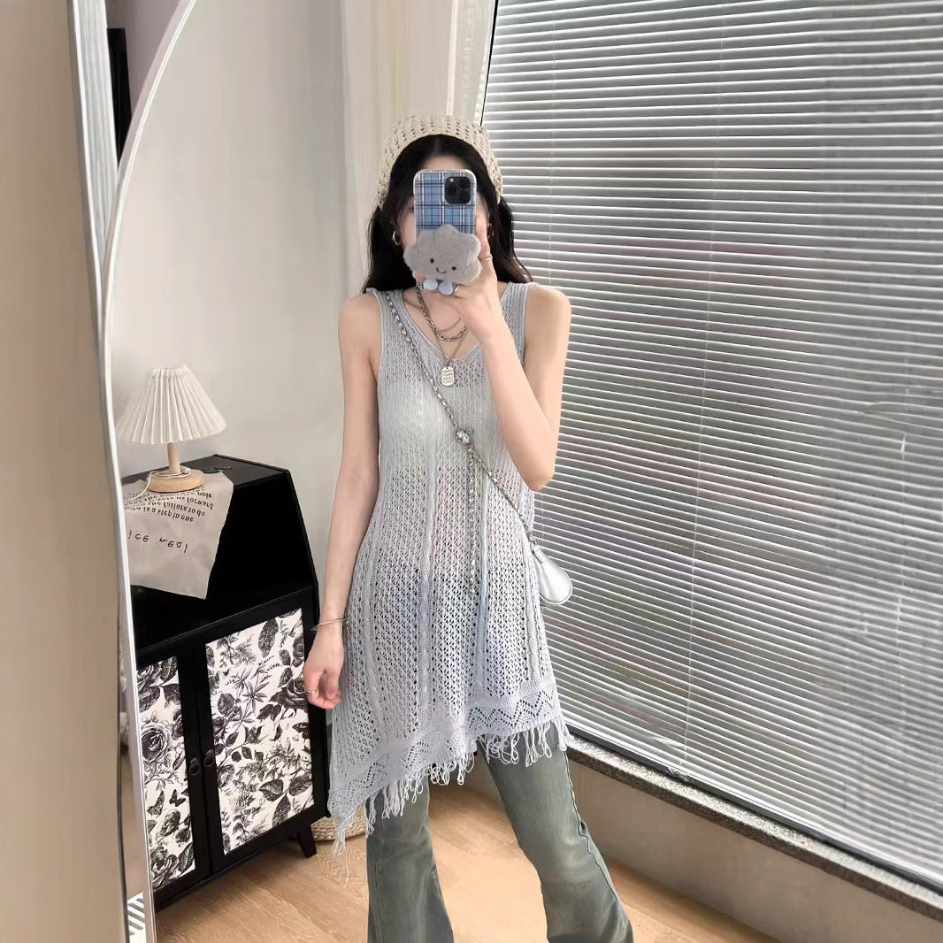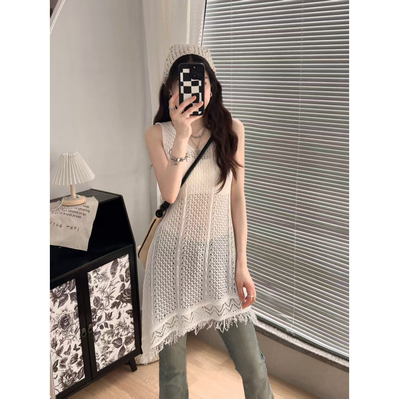Sweet All-matching Hollow Sleeveless Knitted Dress Women